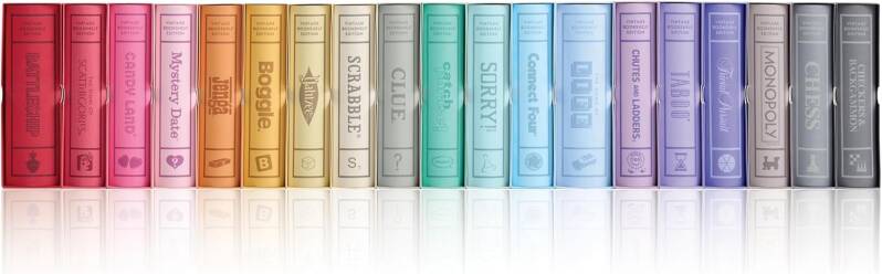 Want all the Classic games within your reach? In your bookshelf, no less?! These are Vintage Versions of these classic games in Bookshelf Edition. Talk about aesthetic and handy. Contained in this set are: Battleship, SCATTERGORIES, Candy Land, Mystery Date, Jenga, Boggle, Yahtzee, Scrabble, Clue, catch phrase, SORRY!, Connect Four, LIFE, Chutes and Ladders, Taboo, Trivial Pursuit, Monopoly, Chess, Checkers and Backgammon!